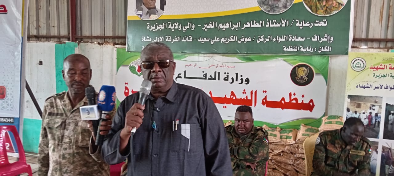 ممثل والي الجزيرة يشهد توزيع فرحة العيد لأسر الشهداء ويدعو لإستنباط مشروعات تنموية مستدامة