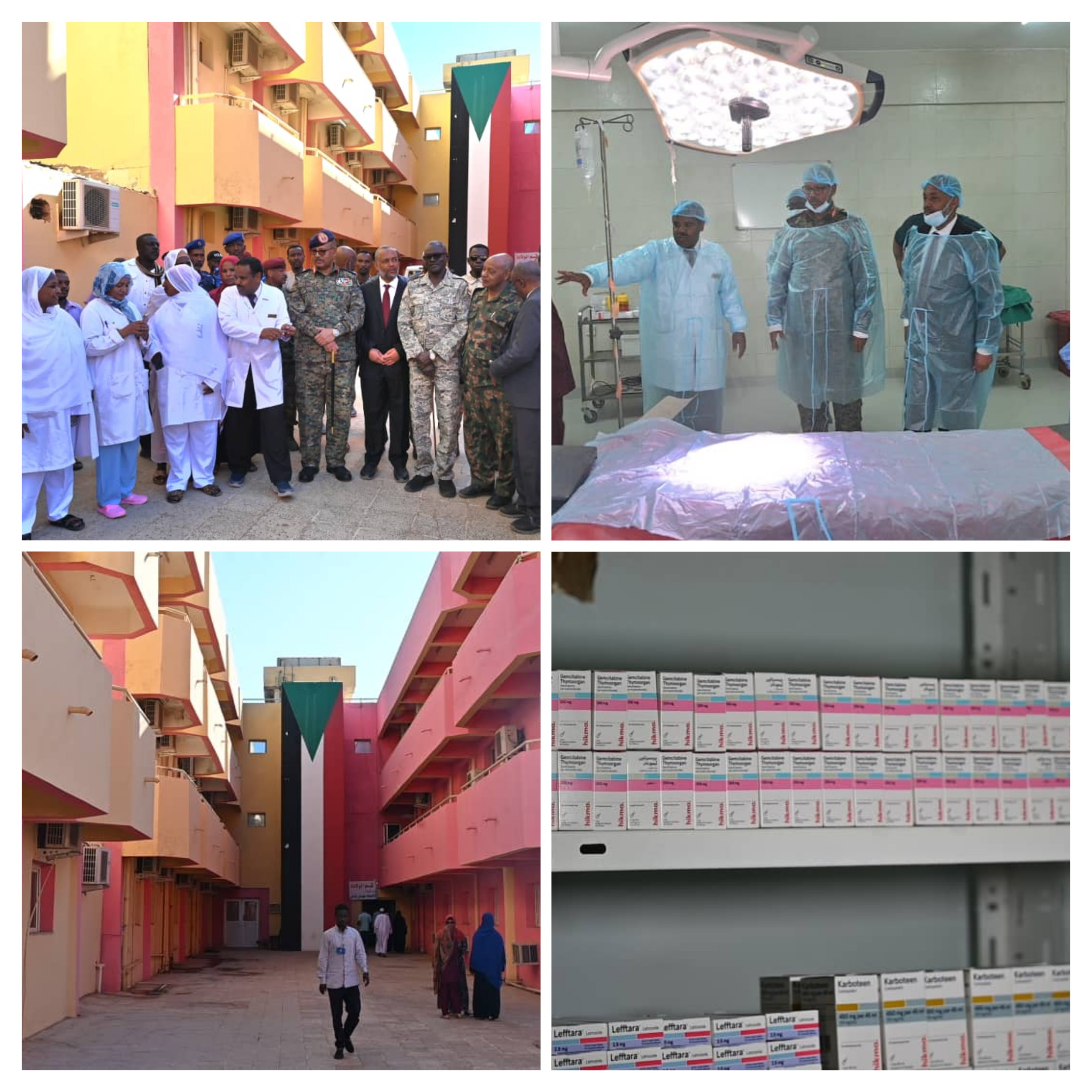 وأعرب الفريق أول ركن إبراهيم جابر عن تقديره البالغ للكوادر الطبية المرابطة بالمستشفى، مؤكداً التزام الدولة بإكمال كافة التجهيزات والمعدات الفنية اللازمة لضمان تشغيل المستشفى بكامل طاقته الاستيعابية.